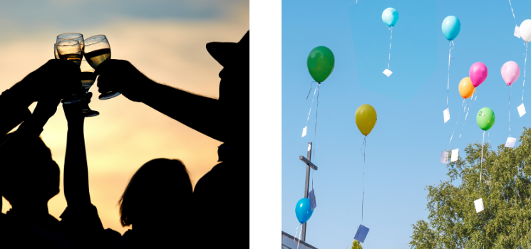 Tröstliche Abschiedsrituale am Grab: Trinken Sie gemeinsam seinen Lieblingswein oder lassen Sie Luftballons mit persönlichen Wünschen in den Himmel steigen – all das kann die Verbundenheit in der Trauer stärken.